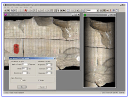 Вращающийся керн: Трехмерный вращающийся керн происходит после трехмерного алгоритма и вращения изображений внешности кернов, полученных аппаратурой сбора керновых изображений. Можно произвольно вращать для того, чтобы наблюдать внешность и трехмерное изменение кернов.