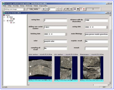 База микроизображений горных пород и подсистема их управления является программным обеспечением для микроизображений горных пород, текстового описания, хранения информации данных и комплексного управления. Она не только имеет все функции для обыкновенной базы данных (как импорт, правка, управление, поисковое проявление, смешенная перестановка и печатание рисунков и текстов), но и специальные функции (как корреляция микроизображений горных пород одного и того же пласта многочисленных скважин, обработка микроизображений горных пород, альбом микроизображений горных пород). Настоящая систем работает на компьютере, разработана Visual C++6.0 в среде Windows 2000, функции полные, содержание богатое, интерфейс отличный, использование удобное.
